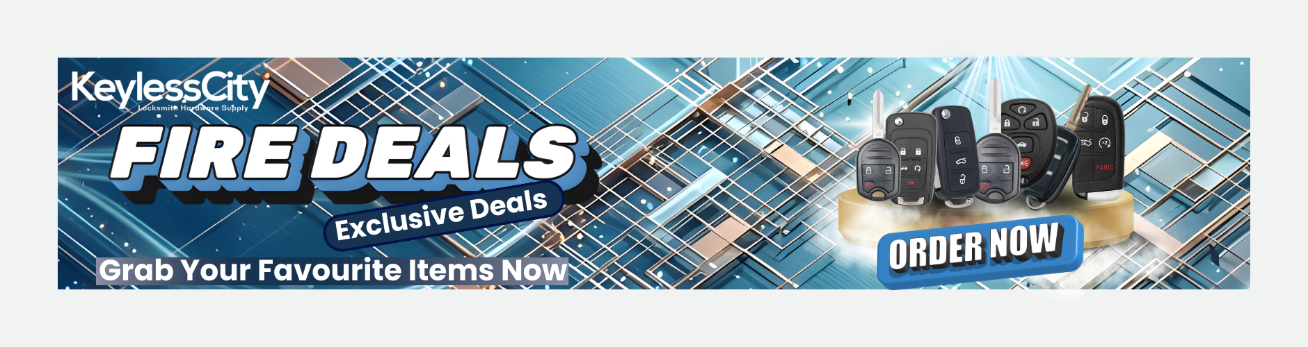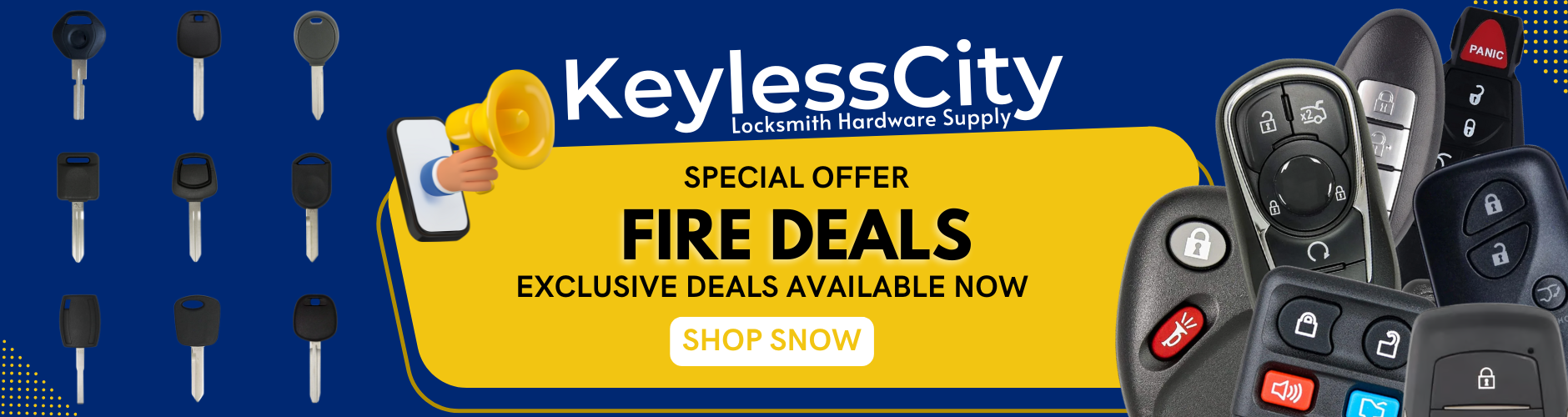 KeylessCity Locksmith Hardware is a locksmith supplier in Houston. We supply car keys, smart keys, keyless entry remotes, fobiks, along with commercial & residential door hardware, door locks and everything you need to successfully start and run your locksmith business - ask us about Locksmith starter order to help you kick off your skills!